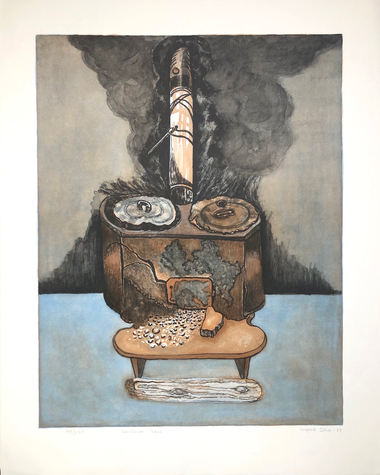 Grafiskt blad av konstnären Ingrid Olsson.